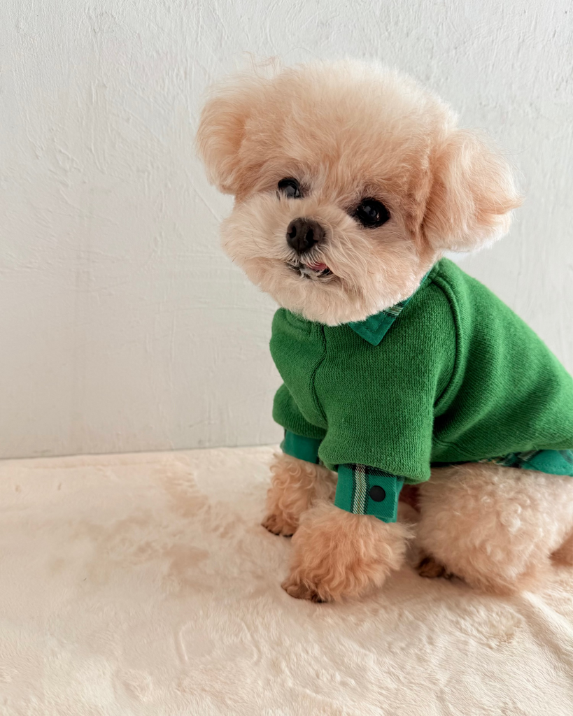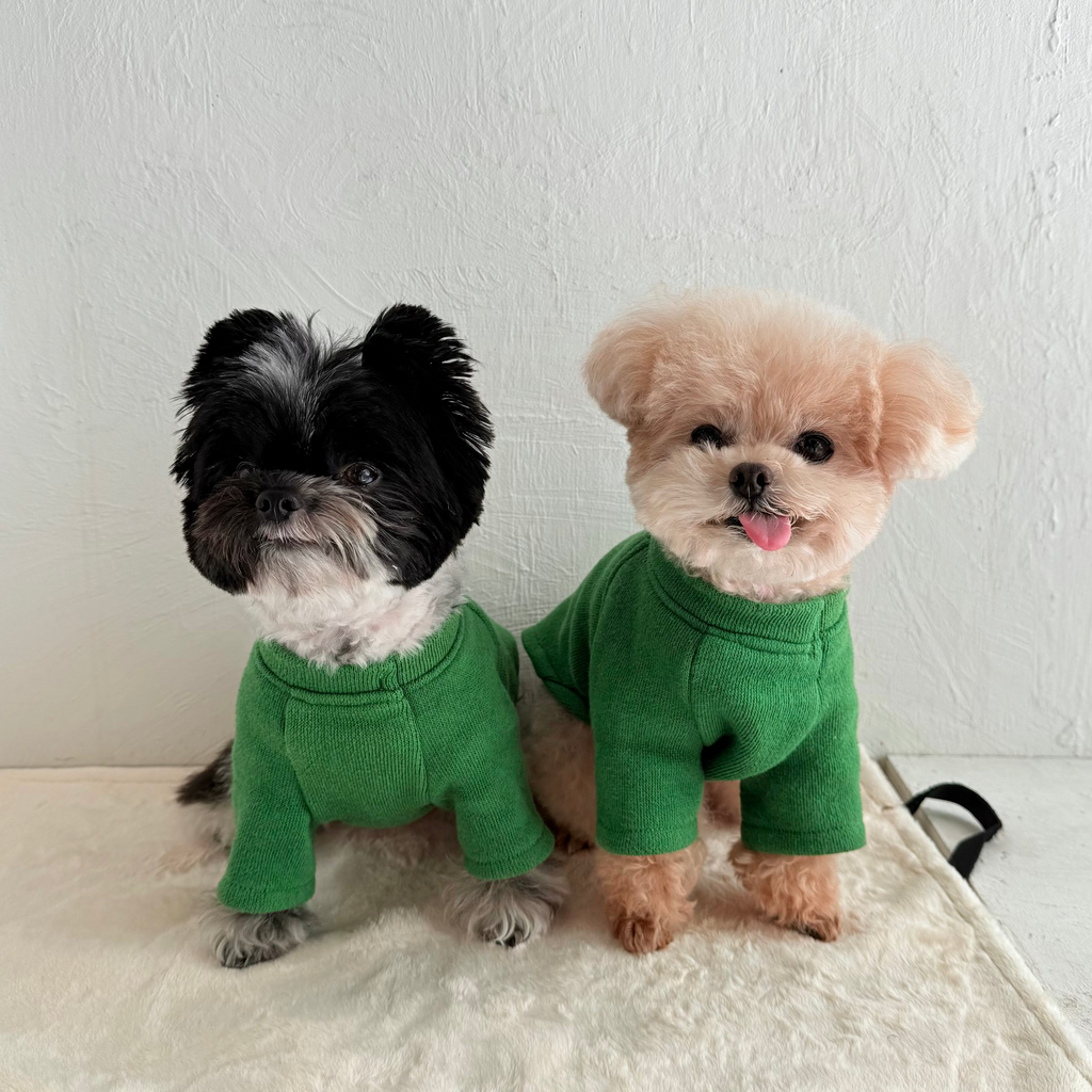 鮮やかなグリーンのしっかりとした上質なニットで仕立てました