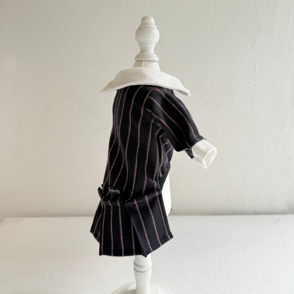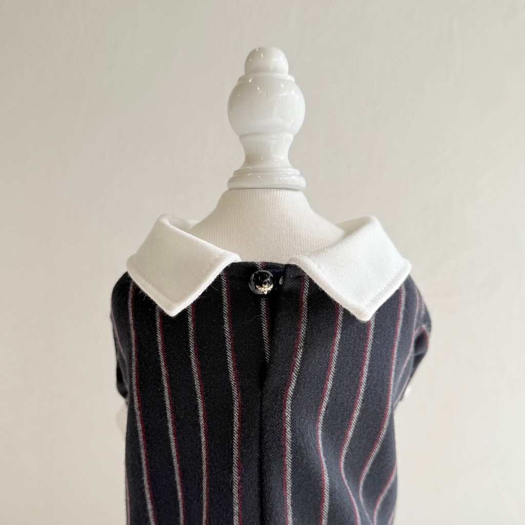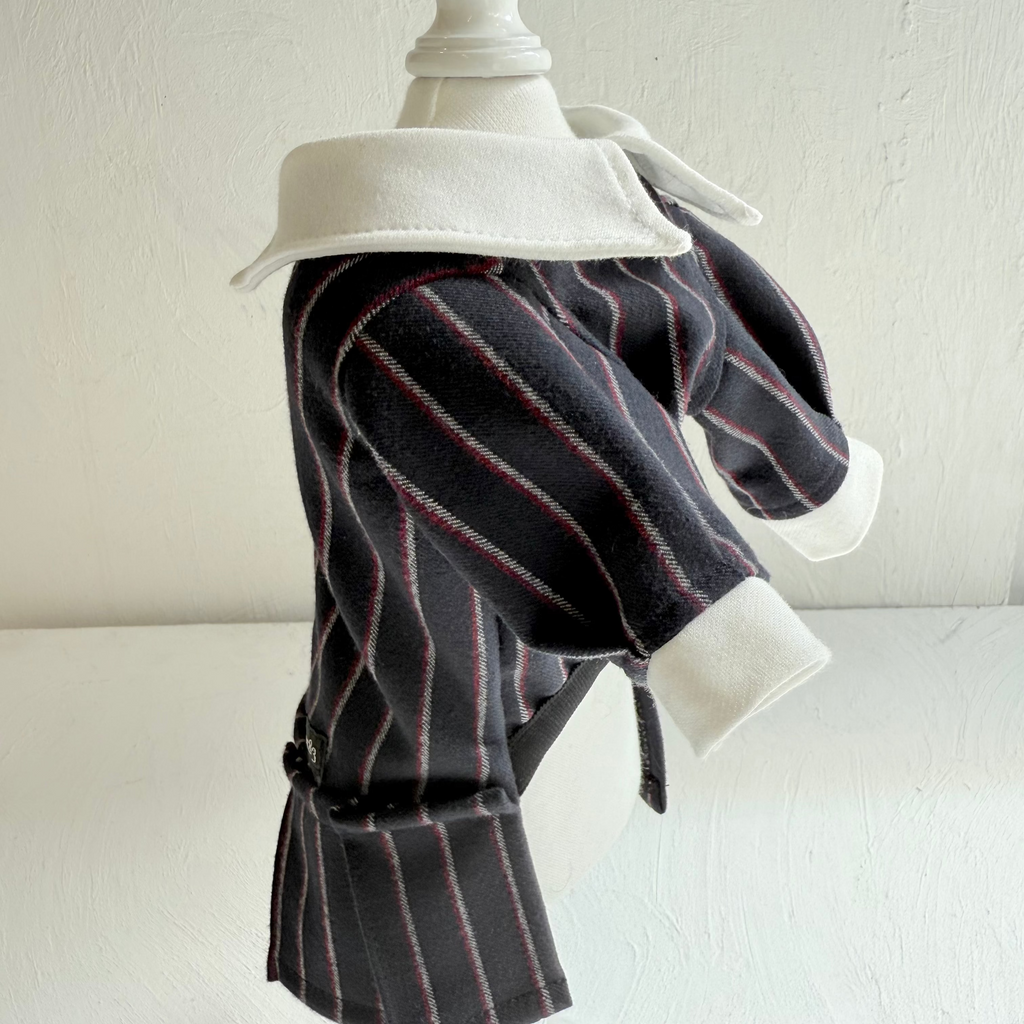 濃紺ベースにボルドーとホワイトストライプが織り込まれたかっこ良い生地を使用