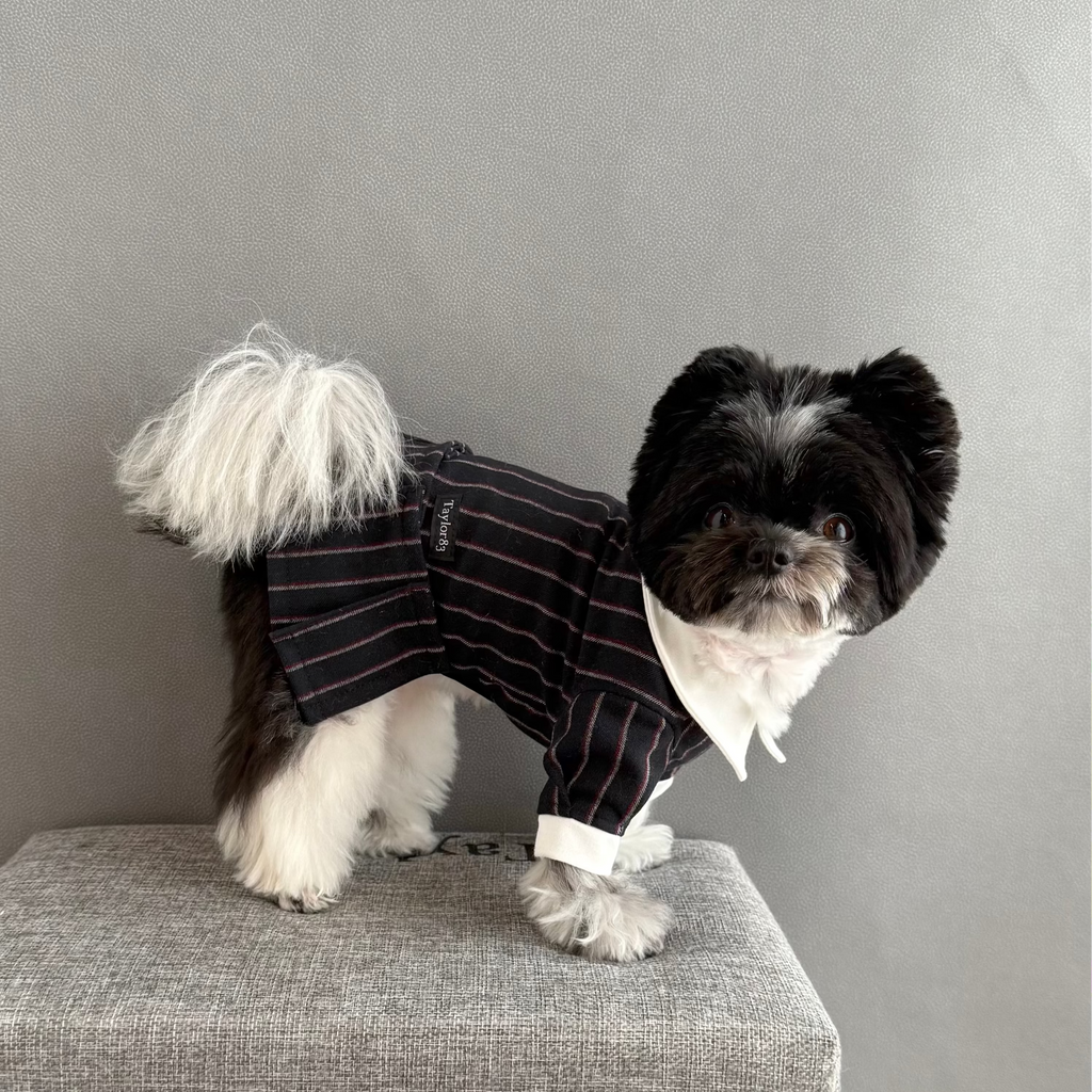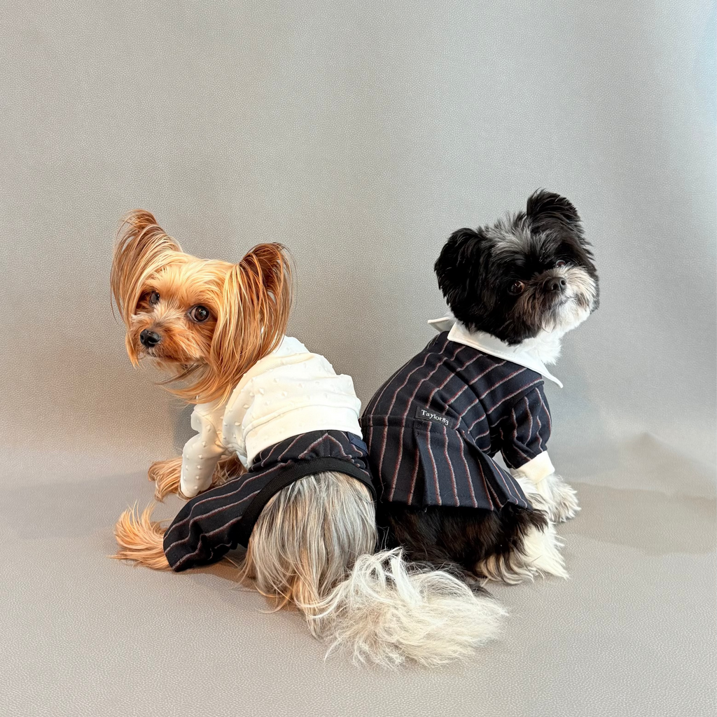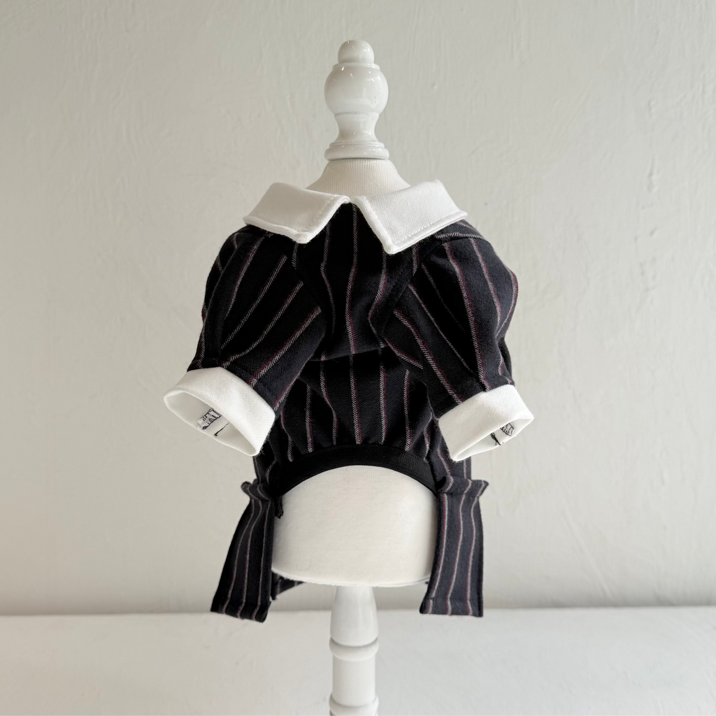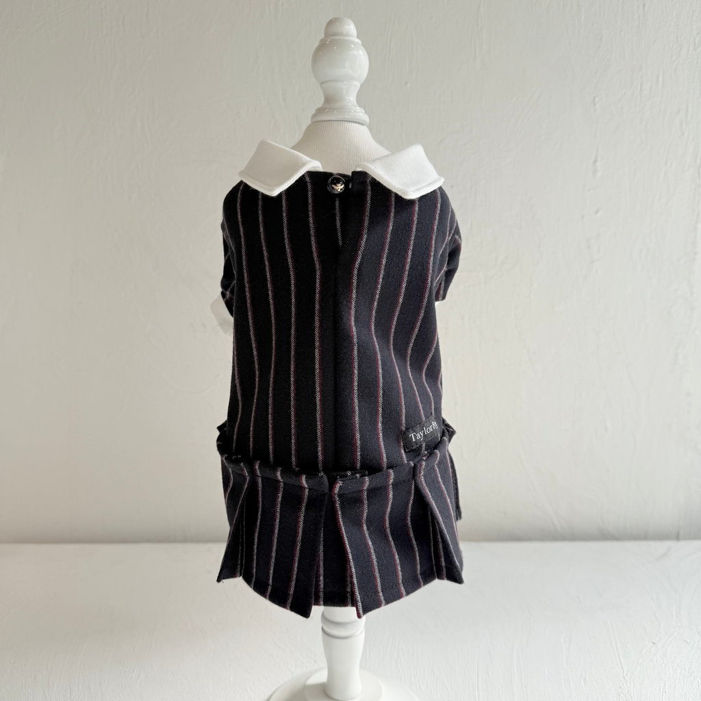 濃紺ベースにボルドーとホワイトストライプが織り込まれたかっこ良い生地を使用