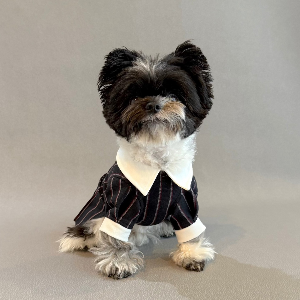 そしてシャープな形の白いカラーが顔映り抜群のスパイス