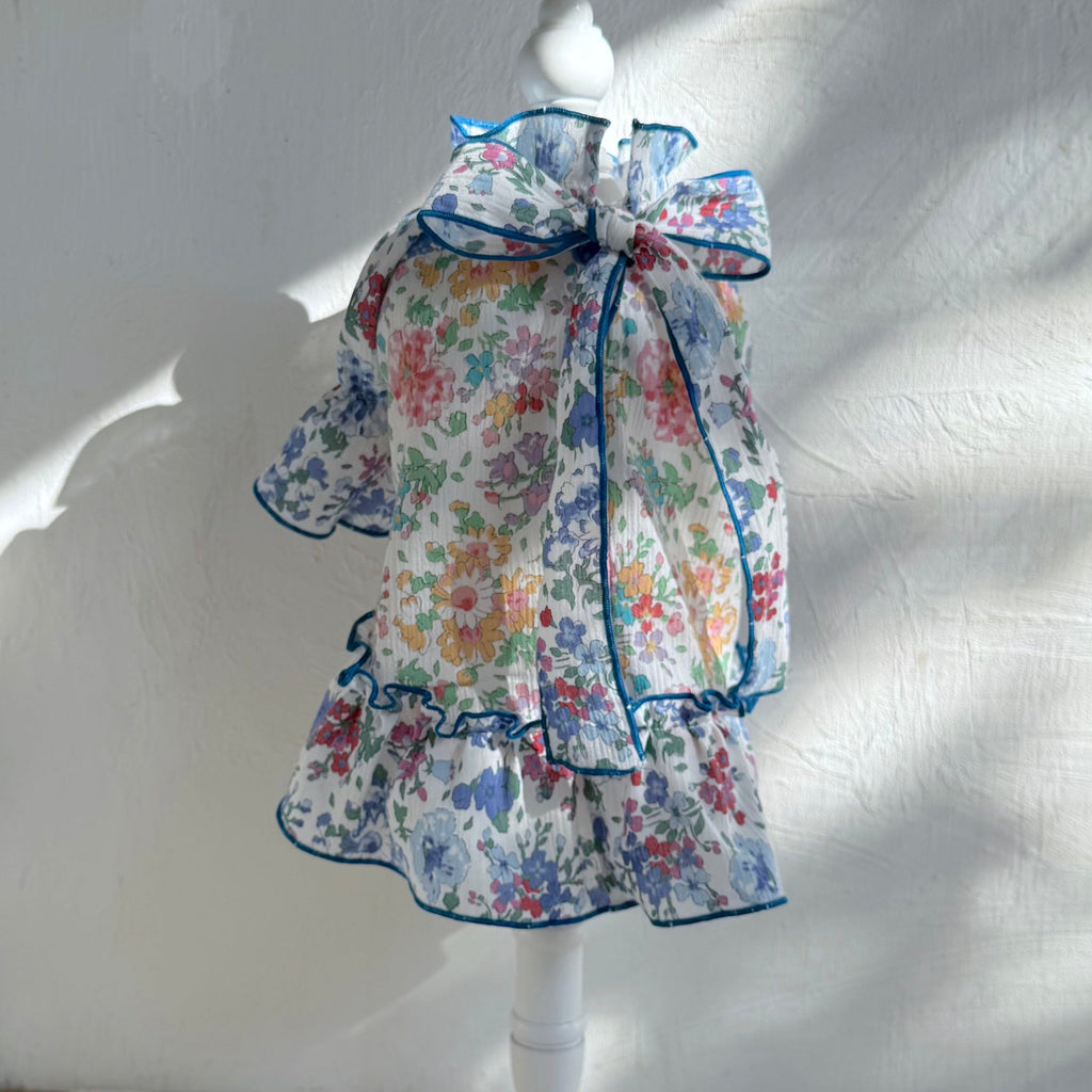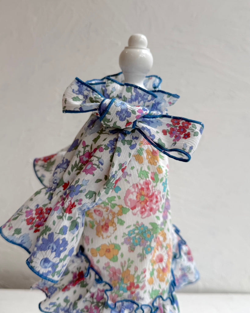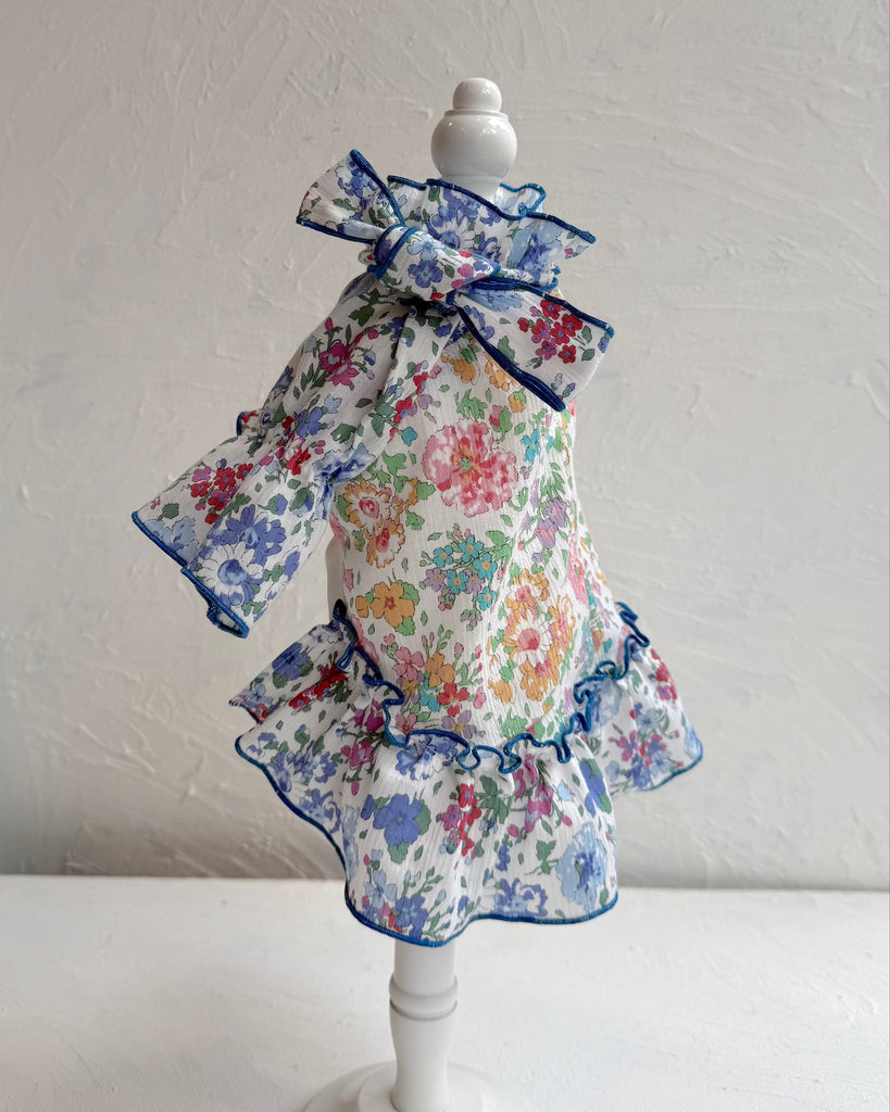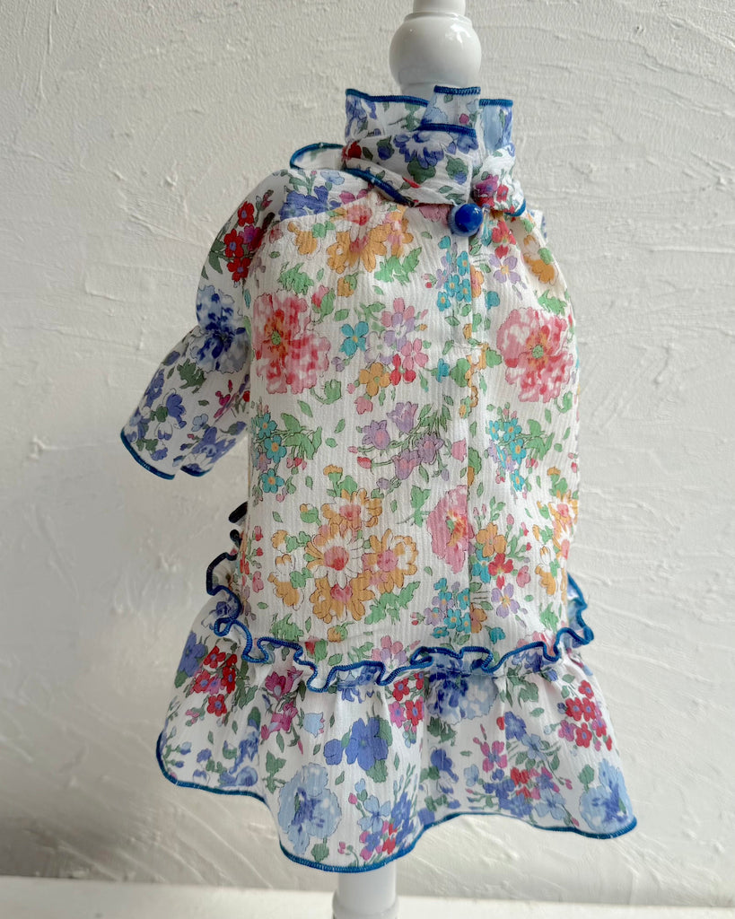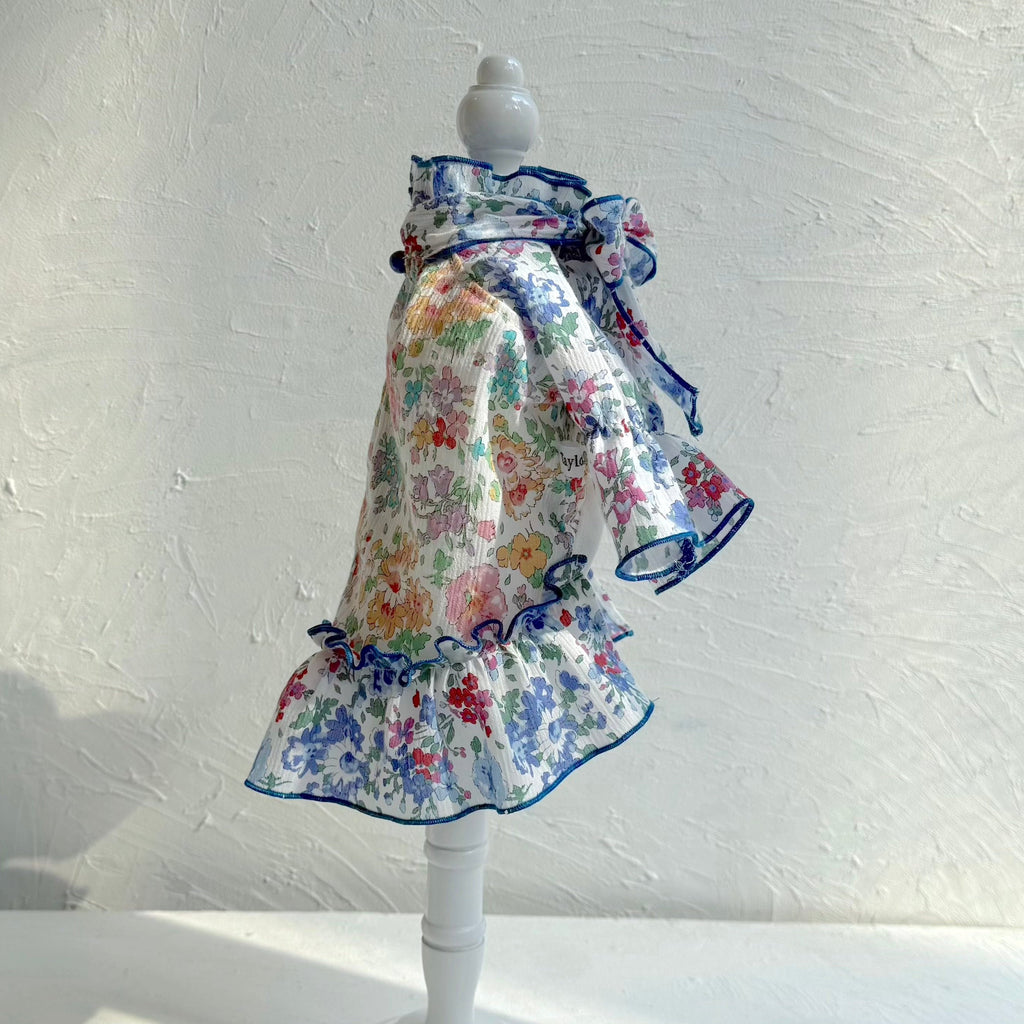 リバティーの上品で上質な楊柳(伸縮のあるちりめん) 生地で仕立てたワンピースです